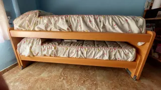 Se vende cama nido de 90cm con sus dos colchones. - Estructura de madera. - Colchones de tela.