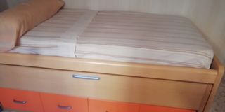 Se vende cama nido. Con 4 cajones grandes. Una cama es de 90cms y otra de 80cms.Muy poco uso. No incluye ni colchones ni somieres.