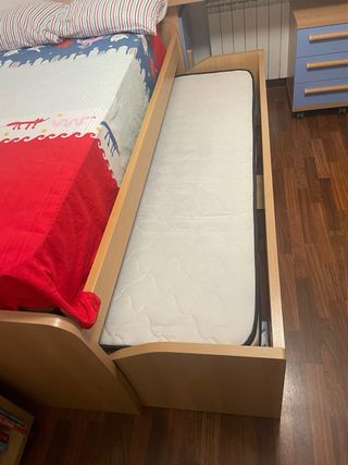 Se vende cama nido con dos colchones de diferentes medidas. - Colchón principal: 188x90cm - Colchón inferior: 180x90cm Estructuras metálicas y lamas de madera en perfecto estado. Los colchones son bastante antiguos de muelles (preferible cambiarlos)