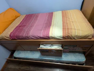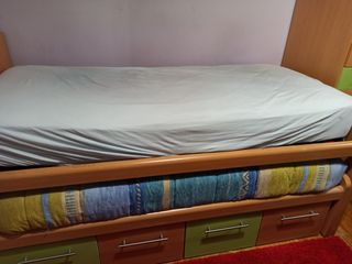 se vende cama nido 90 tiene tres cajones muy amplios para guardar ropa y una segunda cama plegable. Para colchón de 90cm ahora está desmontada