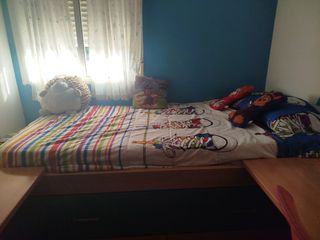 Muebles de habitacion totalmente nuevos y muy cuidados. Dispone de cama nido, arcones de almacenaje, cajones en la cama, armario, estanterias, zapatero, mesilla, escritorio y organizador. Camas de 90. Incluye un colchón, ropa de cama y cortinas. Es una habitación en perfectas condiciones y con muebles de excelentes calidades.