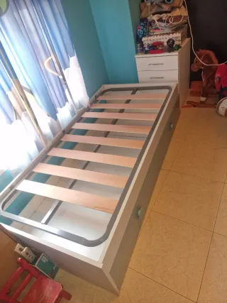 Cama nido de 90cm en buen estado. Es perfecta para una habitación infantil o juvenil. - Diseño moderno y elegante. - Dos cajones amplios para guardar ropa de cama u otros objetos. - Estructura robusta y resistente. solo venta en persona