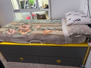 Cama nido Ikea. En buen estado como se ve en las fotos . Dos cajones amplios. Se vende SIN COLCHONES . Medidas específicas en foto. La cama está desmontada (con cada paquete identificado) listo para transportar o enviar .