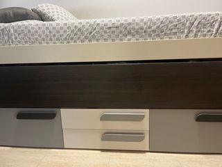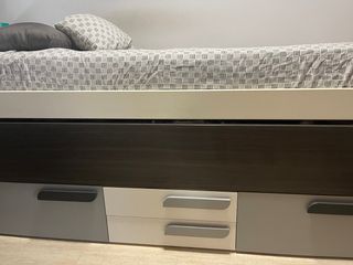 Urge vender cama nido con cajones, ideal para habitación juvenil. Se encuentra en muy buen estado. Regalo 2 colchones el de la cama principal que està en buen estado y el de la cama nido tambien. Medidas .alto 84 cm con el colchón, de ancho 104 cm y largo 205 cm.Se encuentra en la playa de Gandía, hay que venir a por ella. - Incluye cama nido y dos cajones. - Diseño moderno y funcional. - Perfecta para ahorrar espacio.