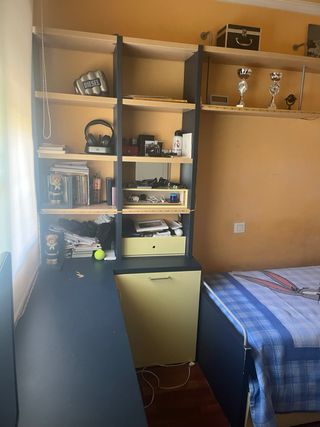 Muebles para habitación juvenil, prácticamente nuevos. Ideales para crear un espacio funcional y con estilo. - Incluye cama nido con cajones. - Armario ropero con cajones. - Escritorio con estanterías. - Perfecto estado de conservación.