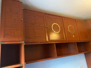 Se vende dormitorio juvenil completo,con los colchones,dos estanterías, sinfonier, mesa estudio. - Cama nido o compacto: 200 ancho x 102 fondo - Armario modular 1 pta: 55 ancho x 2,35 alto -Armario alto o puente:200 x 55 -mesa estudio: 120x 55 fondo. -sinfonier: 80x 140 alto.