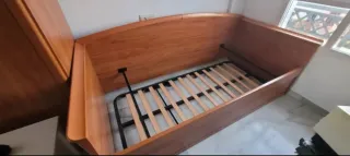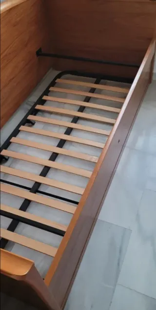 Conjunto de cama nido con módulo supletorio. Estructura de madera móvil con módulo supletorio. Incluye sólo las camas, el armario no. Estupendo módulo de madera con un cajón supletorio para otra cama. Facilmente desmontable para poder transportarlo en minutos. Está compuesto por los somieres de láminas de madera de 180 x 90 cm. extensibles y la estructura de madera. Ocupan sólo el espacio de una cama. Si quieres, también regalo los colchones. Se encuentra en muy buen estado, solo algun roce del uso, sin importancia funcional. Los colchones son de 180 x 90.