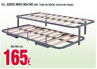 Somier de arrastre con barra central, patas con ruedas y láminas de madera. Ideal para camas nido. PRODUCTO NUEVO CON GARANTIA. Precio del anuncio en la medida de 80cm. Las patas se abren de forma automática. Lleva 3 pletinas de sujeción, Envíos en 24 horas a su domicilio, amplia variedad de colchones.