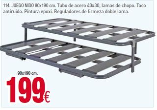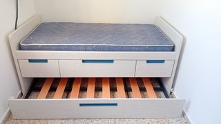 Cama nido con dos colchones, ideal para aprovechar el espacio. - Estructura de cama con cajón extraíble. - Incluye dos colchones.