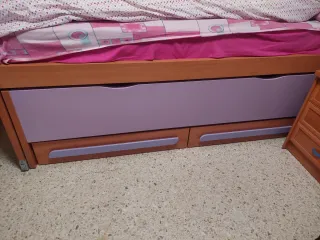 Cama + cama nido con cajones 90x190 la superior y 90x 180 la inferior sólo estructura faltaría somier y colchones.