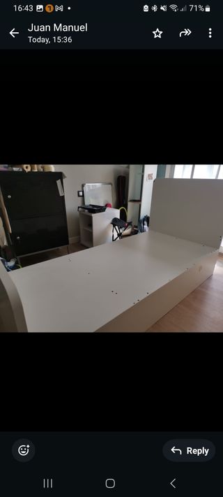 Habitación completa con cama nido, mesa escritorio esquinera y estantería. Cama: alto 82cm, ancho 1,01 m y largo 2,03 m. Cama nido con dos colchones incluidos y 4 cajoneras amplias. Mesa: alto 75 cm, ancho 53 cm, y largo 2,68 m. Almacenaje de la mesa (hace de patas): alto 71 cm, ancho 42 cm, largo 49 cm. Estantería: alto 96 cm, ancho 25 cm y largo 1,10 m. OBLIGATORIO VENIR A DESMONTAR (ya que no se dispone de manual de montaje) Y LLEVÁRSELO. Si es posible, comprar todo junto. *Objetos de la mesa y la estantería no incluidos* Precio negociable