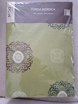 Funda nórdica de la marca Nido. Nueva sin estrenar, en su bolsa original. Viene con dos fundas de almohada de 80x44 cm. Son Tres piezas en total. Bonita y elegante. Medidas 150-160 cms. Largo 190 cms. Edredón sábanas dormir dormitorio cama