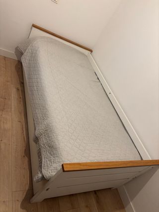 Cama nido preciosa de madera con somier y dos cajones frontales enormes. - Estructura de madera. - Somier incluido. - Dos cajones de almacenamiento con tiradores. No se hacen envíos y para transportarlo necesitarás una furgoneta.