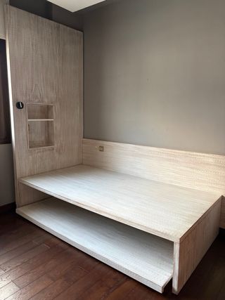 Cama nido con un diseño moderno y funcional, ideal para optimizar el espacio. Incluye los dos colchones. colchon de arriba practicamente nuevo de agosto de 2024 y base de cama superior renovada por Tapiflex para mejorar soporte, comodidad y durabilidad del colchon.