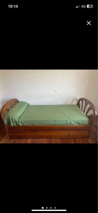 Cama nido de madera de 90 cm con dos colchones de viscoelástica incluidos. Está en muy buen estado y lista para usar. - Incluye dos colchones. - Estructura de madera robusta. - Perfecta para habitaciones pequeñas.