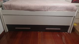 Cama nido, con dos colchones (son dos colchones estándar, no colchonetas) y 4 cajones con gran almacenaje. Colchon principal 1.90x 105 y colchon cama nido 1.80x80 , los dos colchones en perfecto estado , uno usado 3 veces. A recoger en ourense