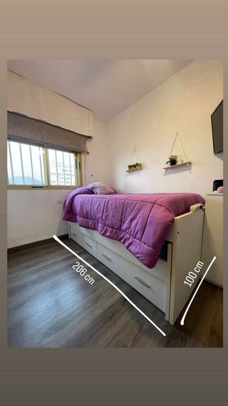 Cama nido en perfectas condiciones, ideal para aprovechar el espacio. Incluye cajones amplios para almacenamiento. (95cm x 50cm) - Medidas: 206 cm de largo 100 cm de ancho 198 cm de ancho las dos camas abiertas 76 cm de alto ( sin colchón ) - Estructura de madera. -Colchones pueden incluirse. -Precio negociable.