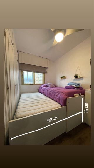 Estructura de cama nido incluidos los dos somieres y el colchón superior. La cama está en perfecto estado, se ha usado poco. Se puede ver si compromiso en Roquetas de Mar y se puede negociar el precio si conpromiso.