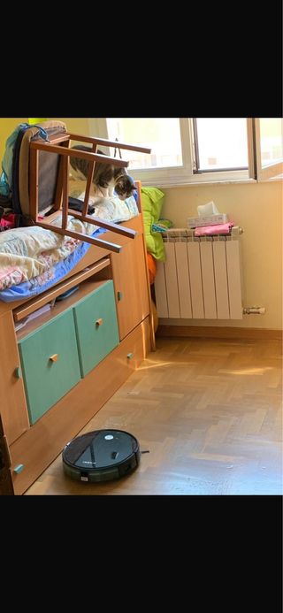 Mueble versátil que combina cama nido, mesa, cajones y armarios. - Estructura principal en tono madera. - Cajones frontales en color verde. - Tiradores de madera. Cama nido de 90 con una mesa extraible con railes, dos cajones debajo y dos armarios a los laterales. Abajo otra cama de 90 extraible. No tengo mas fotos porque la cama ya está desmontada y guardada. Está en perfecto estado. El unico desperfecto que tiene es unos descascarillos en los tornillos que se hicieron al desmontar, ya que traia unos tornillos para unir los cabezales que no salian. Colchones si los quieres los tengo aparte, como nuevos. Cualquier duda preguntar.