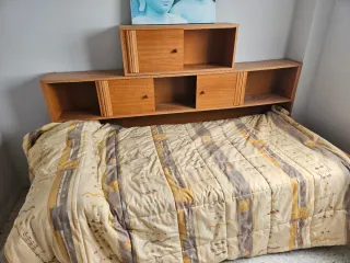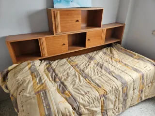 Se vende cama nido de 1.05m con colchones incluidos, además de un cabecero y una mesilla a juego. - Cabecero con detalle de ratán. - Mesilla auxiliar. - Estructura de madera.