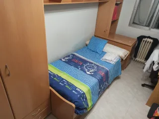 Conjunto de muebles de habitación hechos a medida,ideales para optimizar el espacio. - Cama nido con cajones integrados en el medio y debajo cama que se saca hacia afuera y se levanta. - Escritorio funcional. - Estantería. - Cajonera con ruedas. - Armario de gran capacidad con 6 baldas de almacenaje a su lado. - Balda encima de la cama con armario plegable para almacenaje. - Armario estrecho con baldas de almacenaje. (No se incluye ningún objeto fuera de los muebles anunciados). (PRECIO NEGOCIABLE).