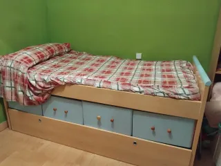 Cama de 90, con almacenaje bajo colchón y cama nido también de 90.