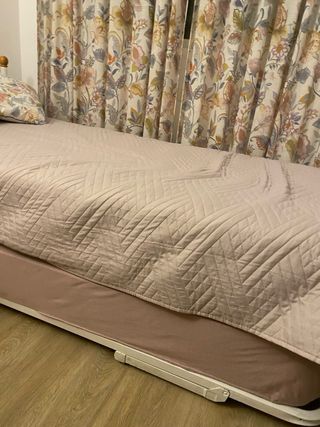 Cama nido individual de 90cm con un colchón de muelles y edredón. Plafon a juego. Somier láminas. Muy buen estado