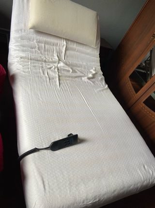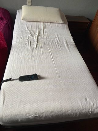 Base de cama ortopédica con somier de láminas. Permite ajustar la inclinación para mayor comodidad. Incluye colchón ortopédico. Funciona perfectamente. - Estructura metálica. - Láminas de madera. *Posibilidad de entrega en Donostia. (30€)