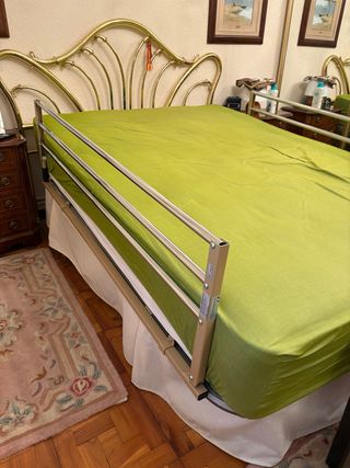 2 barandillas abatibles universales para todas las camas de 1,35 o 1,50 tiene una longitud de 145cm son ortopedicas y estan homologadas estan nuevas . Se venden 2 una para cada lado de la cama.Su precio en tienda es de 200€