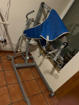 Grúa eléctrica para facilitar el movimiento de personas con movilidad reducida. Su diseño permite un fácil manejo y transporte. - Estructura metálica. - Arnés de sujeción azul. Solo tiene dos usos:De 955€ a 800€ Contacto por Wallapop y recogida en domicilio.
