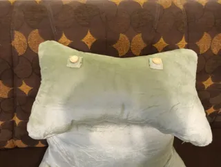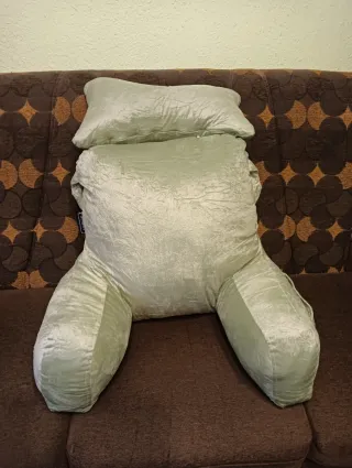 Cojin para comer en la cama. Sujeta muy bien la espalda si estás enfermo. Tiene bastante relleno y los brazos ayudan a que no se incline para los lados. El apoyo del cuello se demonta con dos botones. Tiene asa para su transporte