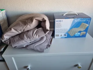 Se vende base de cama articulada doble de 150x190 cm, junto con dos colchones individuales de 75x190 cm. - Base de cama con somier de láminas. - Estructura metálica. - Incluye dos colchones. Los colchones, tienen algunas manchas , hay que bajarlos 4 piso sin ascensor (no ayudo, enfermo) Producto bastante nuevo y con poco uso comprados en abril de 2024 Costo 1300€ hay foto de factura