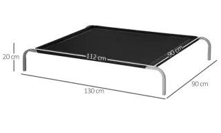 Cama elevada para perros con estructura de acero. Diseñada para ofrecer comodidad y durabilidad, ideal para interiores y exteriores, ofreciendo un espacio cómodo para descansar. Mantiene a tu perro fresco en verano y lo protege de la humedad y los insectos - Material de malla transpirable. - Patas de metal plateadas. - MEDIDAS TOTALES: 130x90x20 cm (LxANxAL). Adecuado para perros que pesen menos de 40 kg