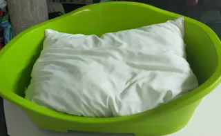 Vendo porque, como buena gata, ella dice que duerme donde quiere. O sea, en mi cama... Entrego en Barcelona o Sabadell Cama redonda y mullida para gatos o perros pequeños. Suave al tacto y muy cómoda.