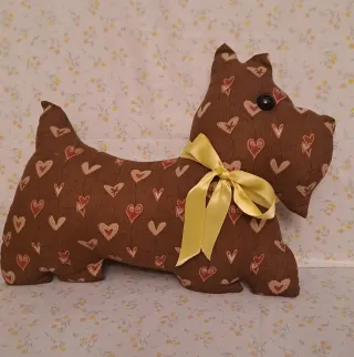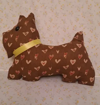 Cojín decorativo perro tela corazones