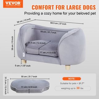 Sofá para Mascotas, Sofá para Perros Pequeños y Gatos, Cama Sofá de Perro de Terciopelo Suave, Sofá para Gatos de Carga de 66 lbs, Gris Oscuro