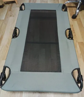 Cama elevada para perros, ideal para mantenerlos cómodos y frescos. Su diseño permite una buena circulación de aire. Regalo el dispensador de chuches o de comida. 106x61x20 - Estructura resistente. - Malla transpirable. -Nuevo sin usar