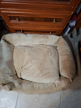Cama suave para gato o perro. Sin uso pues a nuestro gato no lo usa, no le gusta. dos piezas. suave y blandita.