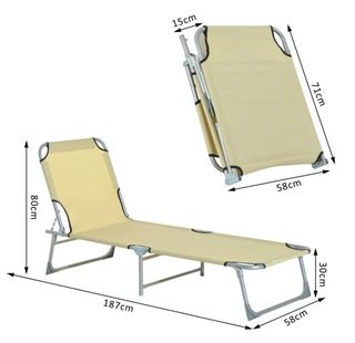 Outsunny Cama de Camping Plegable con Respaldo Ajustable en 4 Niveles Carga 120 kg para Playa Jardín Piscina 187x58x28 cm Beige a20-028cw mq2