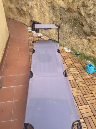Cama plegable portátil, ideal para camping o relax en casa. Está en buen estado, aunque presenta algunas marcas de uso. tengo 2 una 30 las dos por 50 - Estructura metálica resistente. - Tejido de color gris. - Fácil de montar y desmontar.