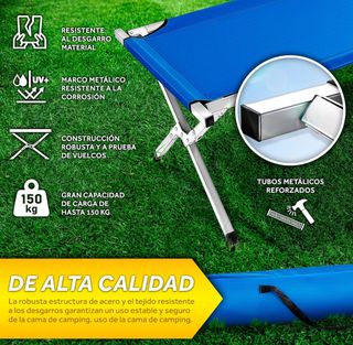 1 solo uso de esta Cama doble plegable para acampar, ideal para viajes y aventuras al aire libre o para visitar en casa. Esta NUEVA, como a estrenar y por tanto con GARANTIA de la marca, la compramos en abril-mayo de este 2025. - Diseño compacto y fácil de transportar. - Superficie de descanso amplia y cómoda. - Estructura de metal resistente y duradero. NO NEGOCIABLE Y ENTREGA EN MANO