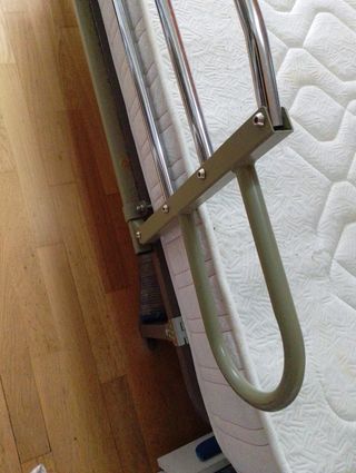Barandilla de seguridad extensible y abatible. Ideal para personas con discapacidad o enfermas que necesiten ayuda para no caerse de la cama o sujeción para levantarse. Soporta hasta 135 kg. Extensible 66 – 86 -107 cm. Se pueden instalar a cualquier lado de la cama. Alto 45 cm. Las cinchas de enganche son largas y permiten la sujeción en cualquier ancho de cama: 90, 105, 135, 150 o 180 cm. Incluye bolsa organizadora con prácticos bolsillos. Abatible 180º. Plegable y fácil de llevar. No requiere instalación. La tiene mi sobrina, si están interesados les pasaré el contacto para que se lo envíen o lo recojan en Humanes de Madrid.