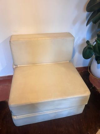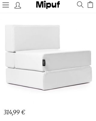 Este puf se transforma fácilmente en una cama, ideal para espacios reducidos. Su diseño es moderno y funcional. - Plegable y convertible en cama. - Tapizado en color blanco. Tambien para exterior Tengo 2 unidades PRECIO NO NEGOCIABLE