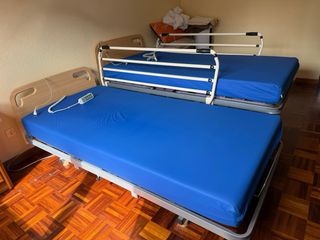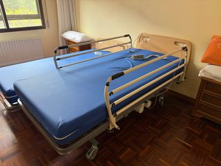 Cama articulada eléctrica Aitana de Sunrise Medical. - Colchón viscoelastico (12+3) 90x190 - Barandillas plegables - Colchón + compresor antiescaras Domus 1 - Almohada viscoelastica