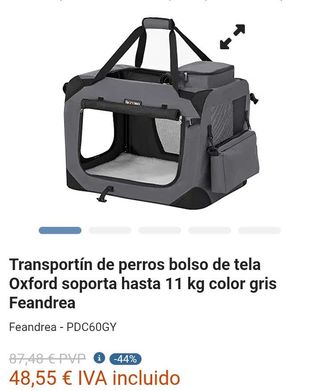 FEANDREA Transportín para Gatos y Perros, Plegable, Tamaño L, Tela Oxford, Malla Transpirable, Portátil, Marco Metálico, con Asas y Bolsillos, 70 x 52 x 52 cm, Gris PDC70GY ColorGris MarcaFeandrea Dimensiones del producto70l. x 52an. x 52al. centímetros MaterialMarco Metálico, Tela Oxford 600D, Revestimiento de PVC, Felpa Función especialColapsable Peso del producto3,4 Kilogramos [Elige la bolsa apta] Esta bolsa de 70 x 52 x 52 cm es adecuada para perros de 11 a 16 kg. Razas recomendadas: Cocker spaniel inglés, Shetland Sheepdog, Beagle, Shiba. Puedes consultar el modo de medición en la imagen de la tabla de tallas [Portátil, ...