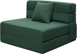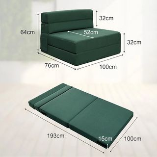 Este sillón cama es una solución práctica y cómoda para tu hogar. Su diseño permite transformarlo fácilmente de sillón a cama. - Tapizado en tela. - Color verde.