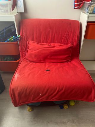 Cama plegable ikea. Recogido queda como un sofá individual. Se abre y se convierte en cama. Ha estado en un curso de niños y tiene algunas marcas de bolígrafo.
