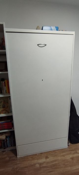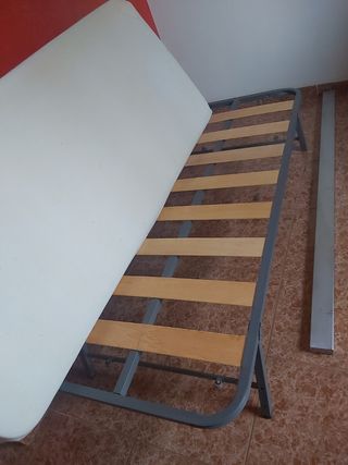 Se vende conjunto de cama individual con colchón y somier plegable. - Cama de 90x190 cm. - Incluye colchón. - Somier de láminas de madera. - Estructura de cama con cajón.
