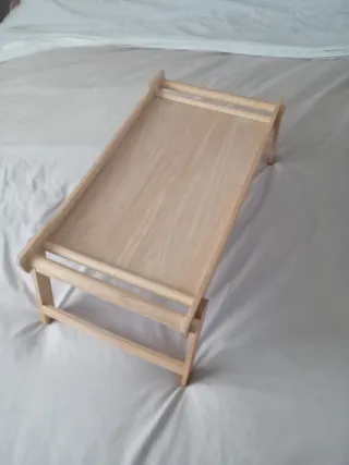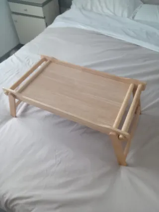 Práctica mesita de cama para desayunos o para tener a mano tus objetos. Mide 60x30x22 cm Patas plegables para un fácil almacenamiento.