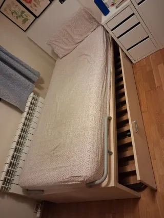 Se venden dos somieres de cama nido plegables, casi sin uso. Están en muy buen estado y son ideales para ahorrar espacio. La cama de arriba es 190x90 y la de abajo 180x90 - Perfectos para camas nido. - Fáciles de plegar y guardar. - Estructura resistente.